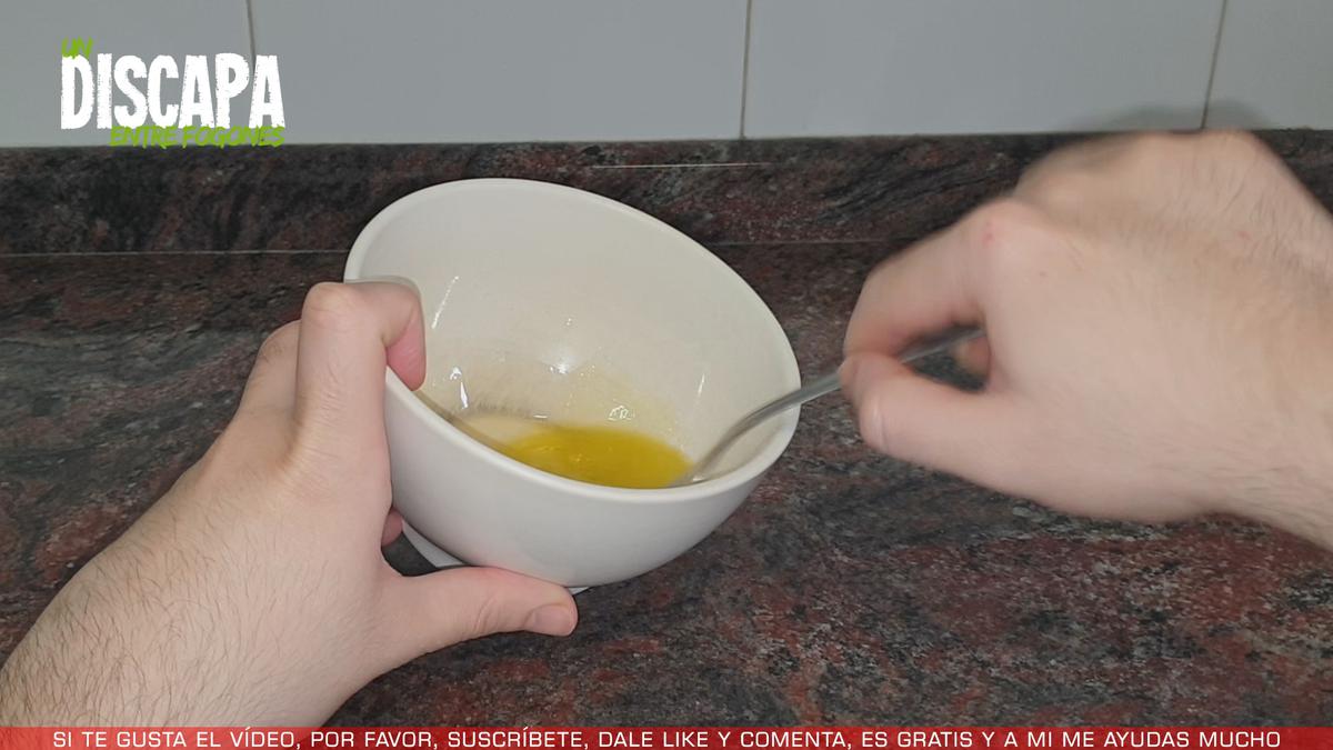4Ahora vamos a preparar la vinagreta, para ello, en un bol añadimos un chorrito de aceite de oliva, el zumo de media lima y una pizca de sal y mezclamos hasta que se integren los ingredientes.