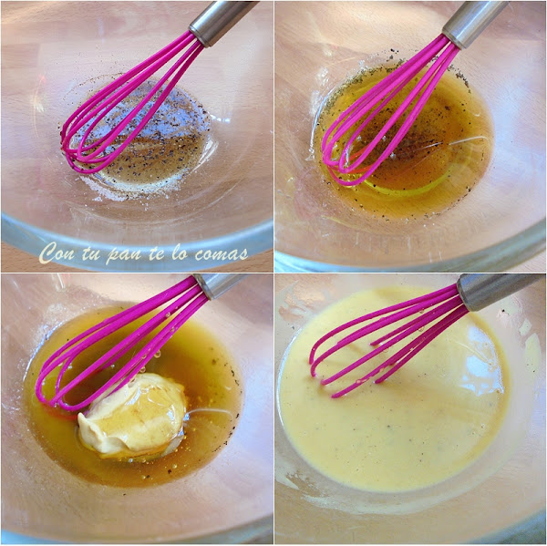 4. Mezclamos los ingredientes del aliño con una varilla para que se liguen bien.