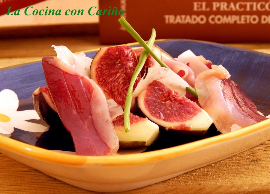 Este verano, mi Carmela publicó en alguna red social, no recuerdo en cual, una foto de una ensalada de Higos con Cecina y me dejo encantado. Compré mis higos, pero, no quedaba Cecina, así que busqué un sustituto de esta y pensé en el Jamón de Pato, y te digo que no me equivoqué. Fantástico.