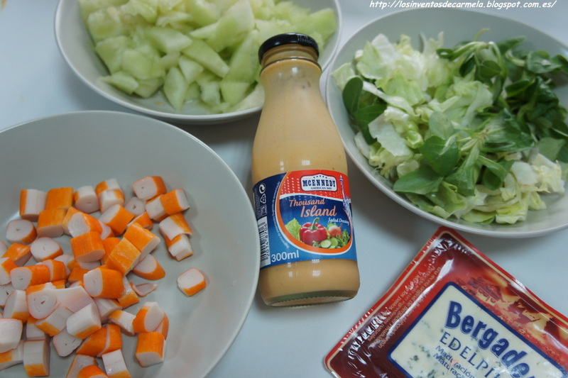 ENSALADA DE HOJAS VERDES, ROQUEFORT Y MELÓN CON SALSA MIL ISLAS