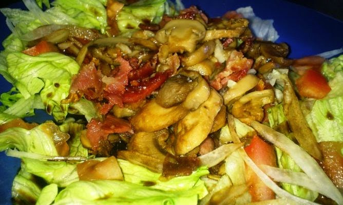 Añadimos el sofrito de champis y jamón en la ensaladera.