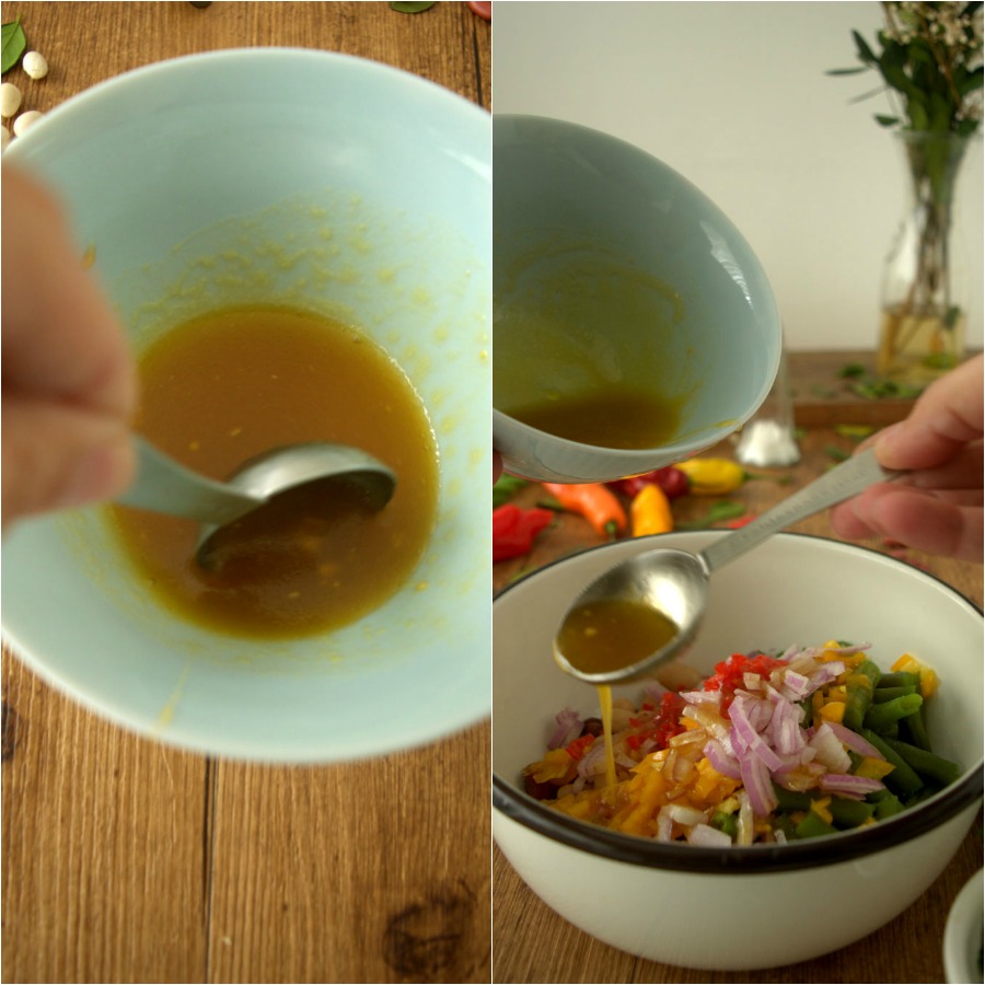 ¿Sabéis una cosa? Me encanta tomar esta ensalada con cuchara. ¡Jaja! La vinagreta con las verduras combinan de maravilla y es un gustazo esa mezcla dulce de la miel con la mostaza y las judías.
