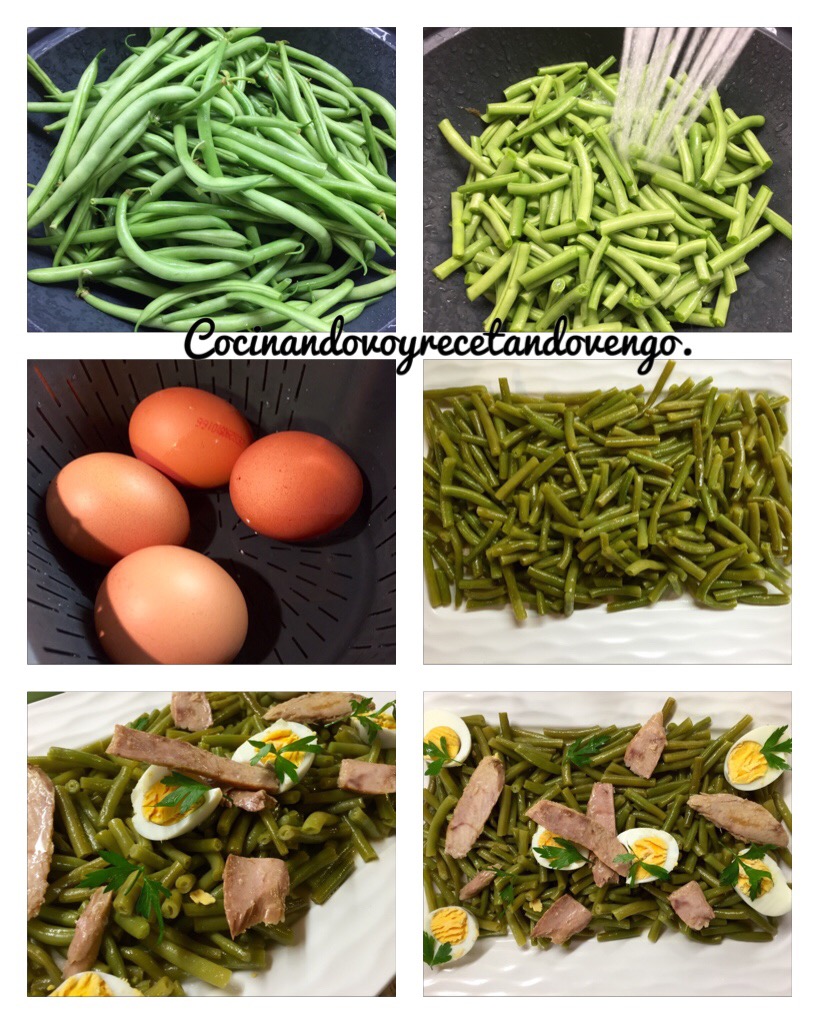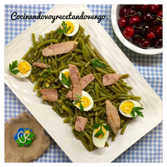 Hola a tod@s!! Hoy vamos a disfrutar de una receta muy tradicional, saludable, rápida, económica, sencilla y muy beneficiosa para nuestra salud. A mi me encanta y llegando la temporada de las judías verdes la preparo con frecuencia, las podemos consumir todo el año, pero su mejor momento es en primavera-verano, donde las encontramos bien frescas y tiernas. Las judías verdes poseen un alto contenido de agua aproximadamente un 90% por lo que se recomienda en dietas de adelgazamiento, también contienen vitaminas y minerales, aportándonos beneficios como subir las defensas y la creación de anticuerpos, son diuréticas y depurativas, muy recomendable para las anemias, hipertensión y para el buen transito intestinal. Esta forma de cocinar las judías verdes, es muy popular en el sur, siempre la he visto en mi casa, en la mayoría de las ocasiones acompañadas de patatas cocidas o al vapor, pero a mi es que me gustan tanto que suelo prescindir de las patatas y hacer la ensalada de judías verdes acompañadas simplemente con huevo cocido y atún. El aliño es opcional y podéis poner el que más os guste, yo os voy a recomendar el que más me gusta a mi ;) seguro que también os encanta!! :D En muchas ocasiones, para mí, la cena perfecta ;)