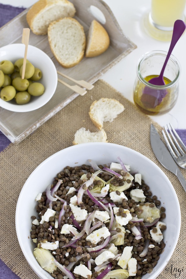 ¿Existirán de verdad los duendes del ordenador como les llamaba un profesor mío? Yo que soy tan terrenal y tan escéptica? no consigo darle explicación. Aunque supongo que más de uno tiene estos pequeños poltergeist en algunos aparatos electrónicos de esos que nos hacen volvernos loc@s. Pero menos mal que esta receta de ensalada de lentejas con feta tan rica es muy de este mundo para compensar? Aquí va.INGREDIENTES