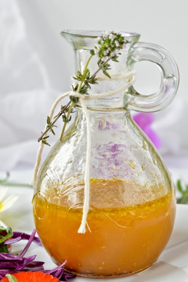 Pour the vinaigrette to the salad. Toss the salad and serve immediately.