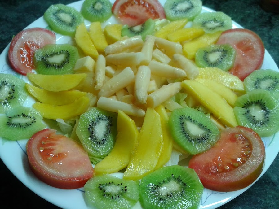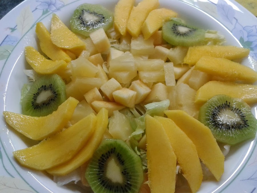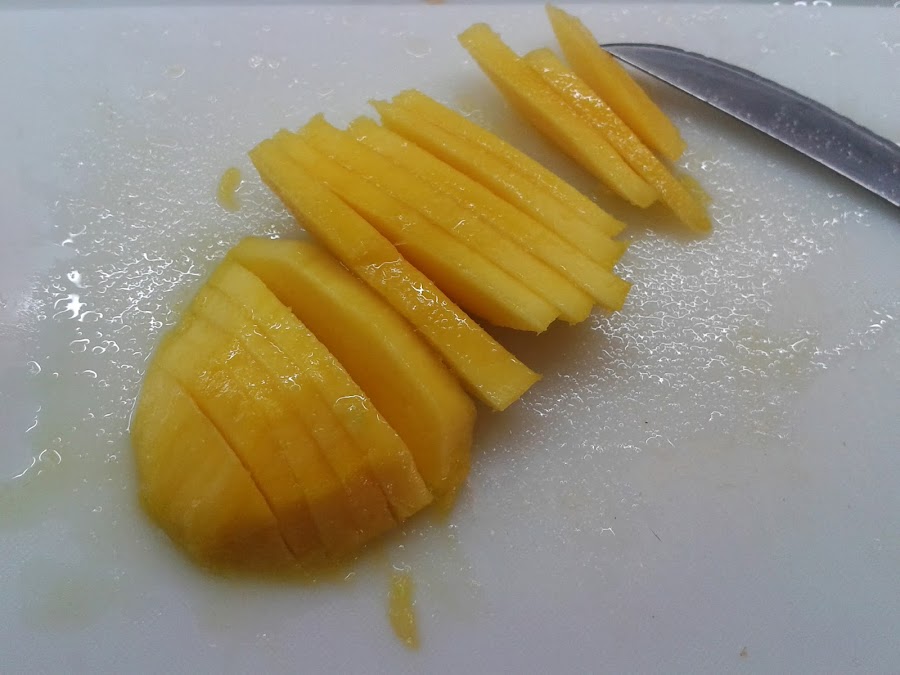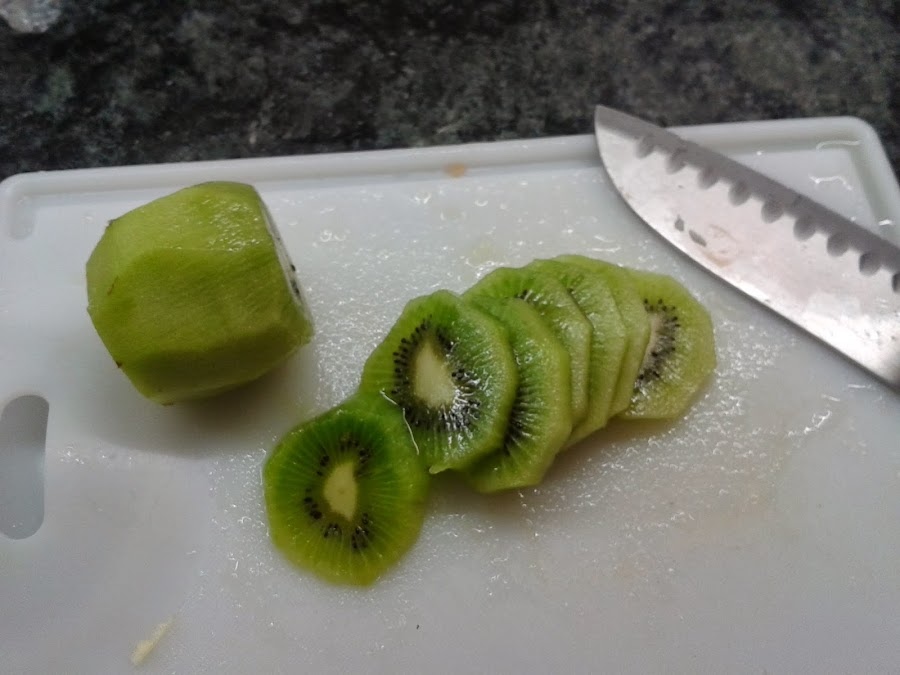 4.- Kiwi en rodajas y lo mismo con el mango.