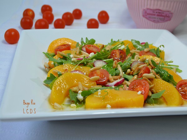 Colocamos en el plato los ingredientes de la ensalada.