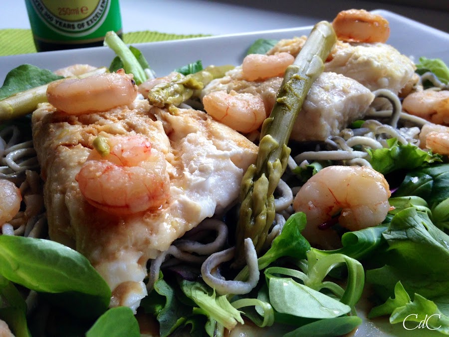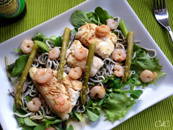 La vinagreta de soja y lima le da un toque exótico delicioso. En este caso he usado la salsa de soja Kikkoman baja en sal, así que el sabor no resulta tan intenso y no camufla al resto de ingredientes.