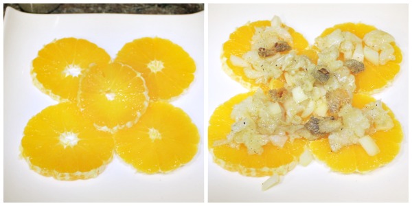 Pelamos bien las naranjas (que quede lo mínimo posible de la parte blanca), y las cortamos en rodajas finas.