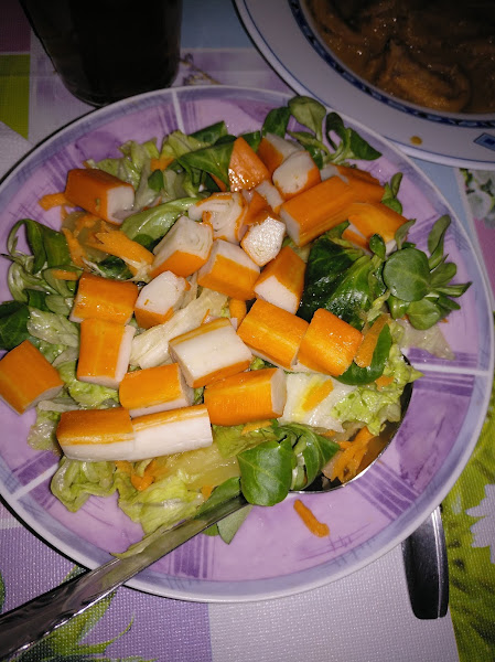 Lavamos y cortamos todos los ingredientes menos la zanahoria que va rallada. Lo ponemos en el plato, lo aliñamos y lo movemos un poco para que quede todo bien mezclado.
