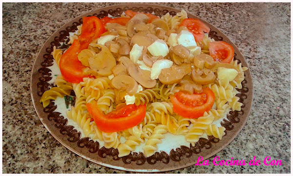 Hoy os traigo una receta de cómo preparar paso a paso una ensalada rica y saludable con pasta, tomate y champiñones.