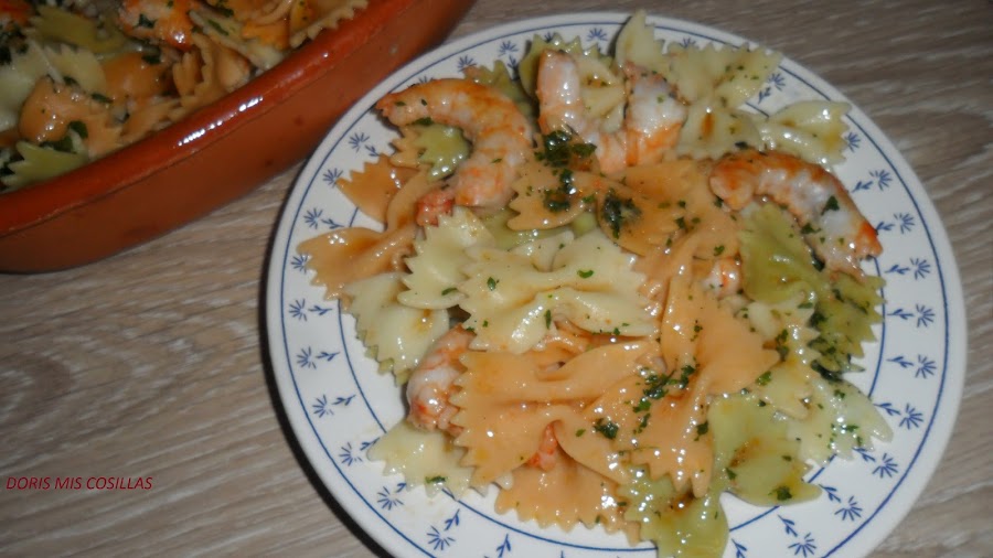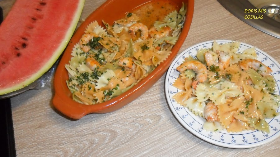 Mientras cocemos las palomitas, en agua caliente tal como indica el fabricante, aclaramos con agua fría la pasta y escurrimos bien.