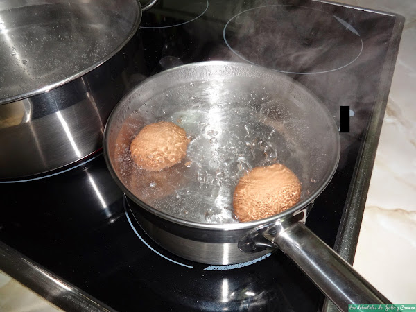 Coceremos los huevos, y los dejaremos reservados para que se enfríen.