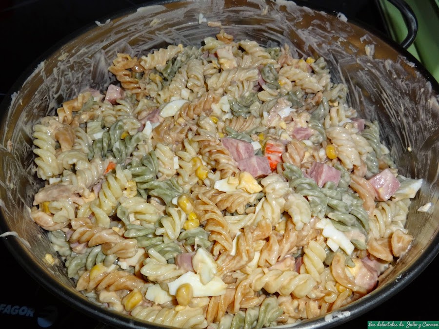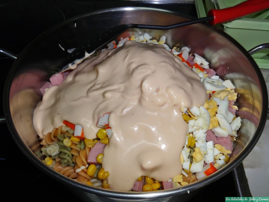 Con estos motivos, ¿quien no quiere prepararlas? Nosotros recurrimos mucho a ellas durante todo el año, y cuando viene alguien a comer a casa y no tenemos mucho tiempo para cocinar, es una solución ideal. En estas, un día se quedo a comer con nosotros mi cuñada y hermana de Carmen, Esther, y dado que a todos nos gusta mucho la pasta, pues nos decidimos a hacer una ensaladita. Pero como no me gusta ser tan simple, busque alguna salsa que pudiéramos preparar para acompañarla, y descubrimos esta salsa rosa, que ya habíamos visto en el supermercado, pero que yo preferí hacerla casera.