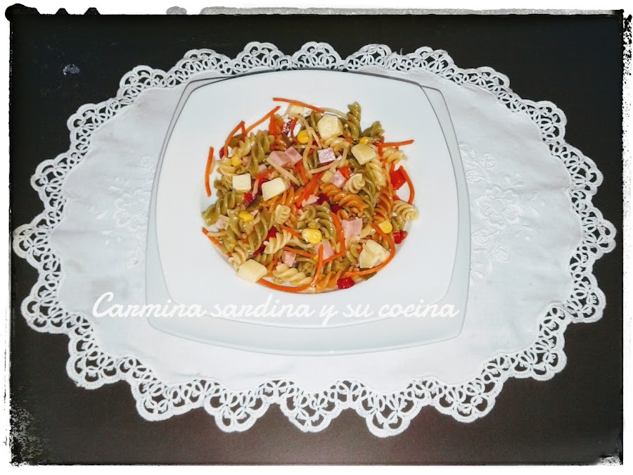 Echamos la pasta en agua salada hirviendo. La cocemos el tiempo indicado por el fabricante.Echar la pasta en un escurridor y rápidamente echamos un chorrito de aceite, mezclamos y metemos a enfriar en la nevera unos minutos.