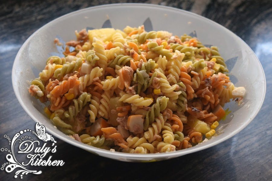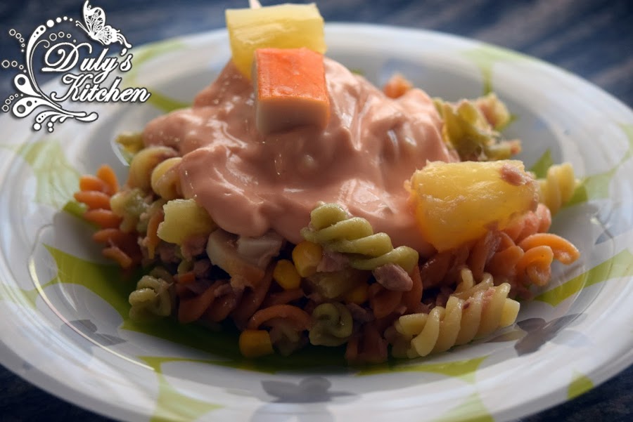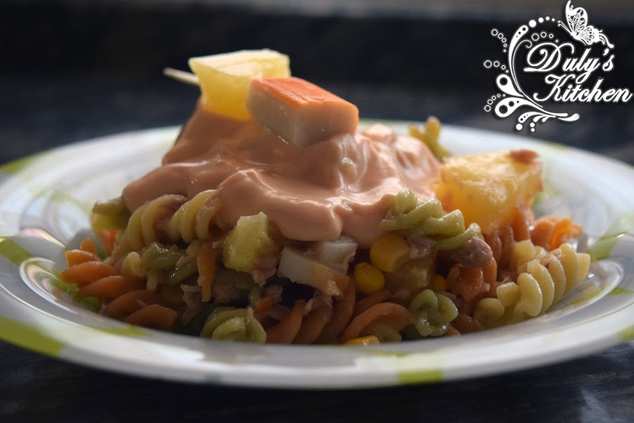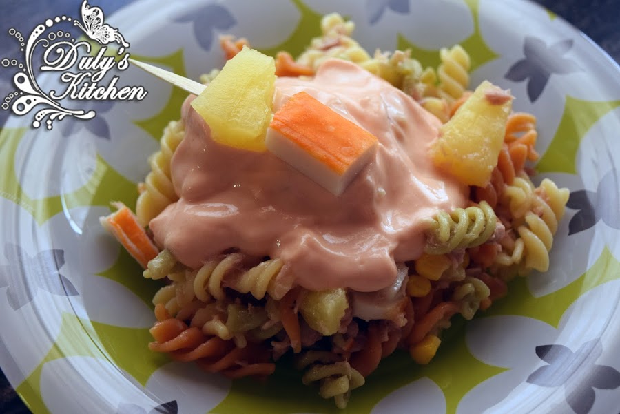 Con este calor sólo me apetecen recetas fresquitas, por eso hoy os traigo una Ensalada de Pasta Tropical. Yo he usado piña pero se puede preparar con fruta de temporada como el melón o el melocotón. Además la acompañaremos con una salsa rosa para darle aún más sabor.