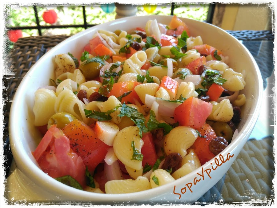 - Cocer la pasta siguiendo las indicaciones del paquete, enfriar y pasar a una ensaladera.