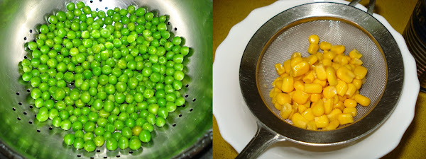 Abrimos la lata de maíz y la vertemos en un colador para que escurra.