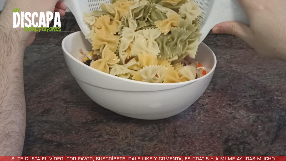 4A continuación incorporamos la pasta ya cocida y escurrida. Mezclamos bien.