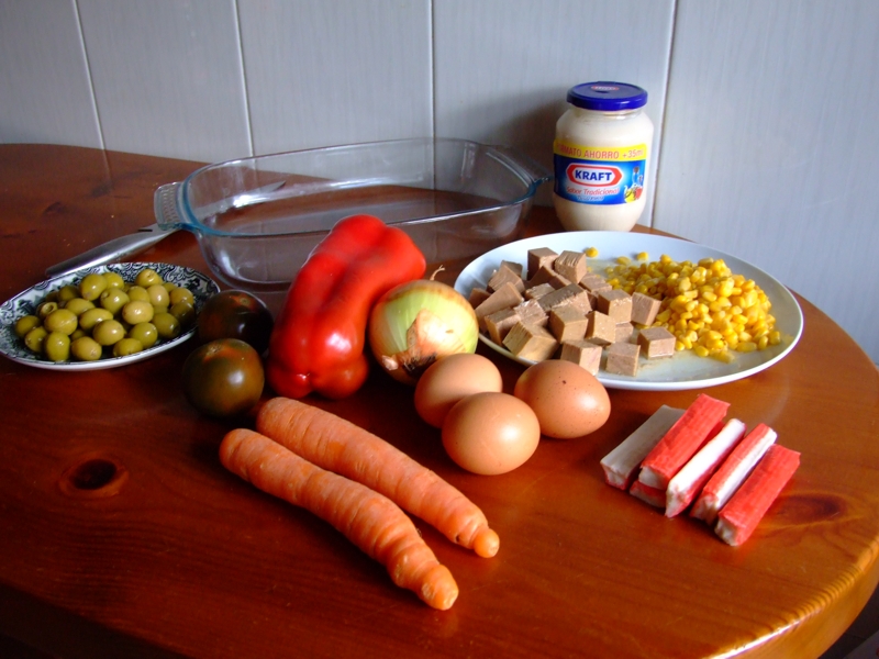 picamos bien fino todo, y mezclamos poco a poco con la mayonesa