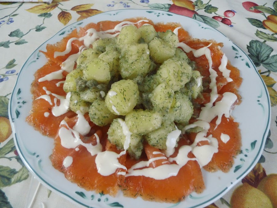 Esta ensalada de patata con salmón ahumado y una refrescante vinagreta, la vamos a probar muy pronto, aunque a nosotros sí nos gusta el salmón poco curado, así que vamos a preparar nuestro salmón marinado.