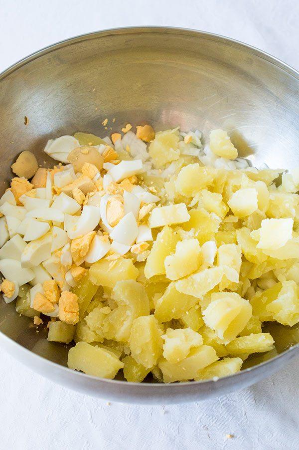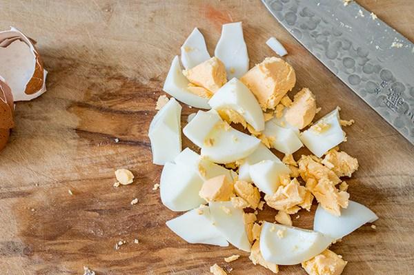 Pelamos y partimos los huevos mas a menos del mismo tamaño.