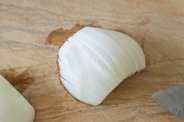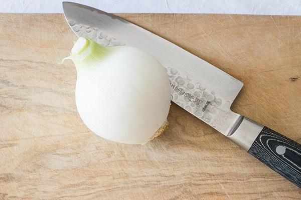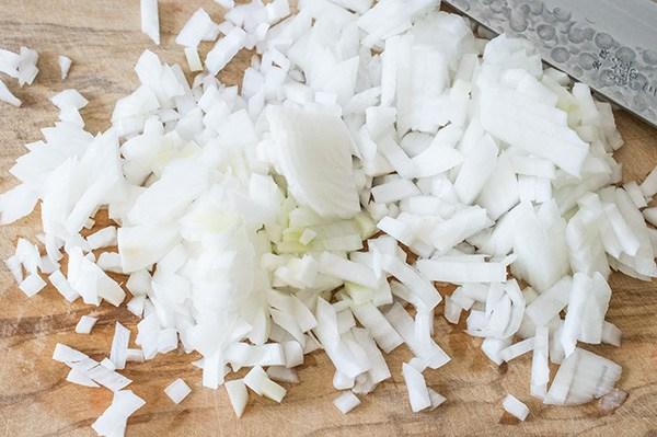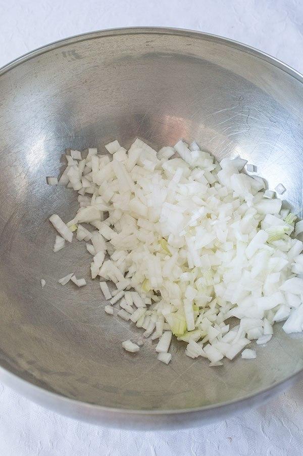 Partimos la cebolleta finamente y la añadimos a un bol.