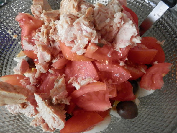 NOTA.- Como ya os he dicho antes, esta receta admite casi cualquier ingrediente. Podéis añadir lechuga, espárragos blancos, langostino pelado, surimi, trocitos de pechuga plancha o cocida que anden pululando por el frigo, maíz... y un larguísimo etc que os asegurará el éxito con esta ensalada.