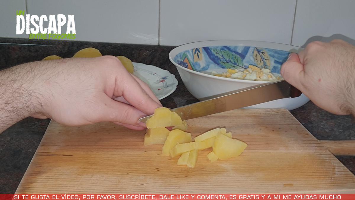 4Y hacemos lo mismo con las patatas, las pelamos y las troceamos en trocitos pequeños.