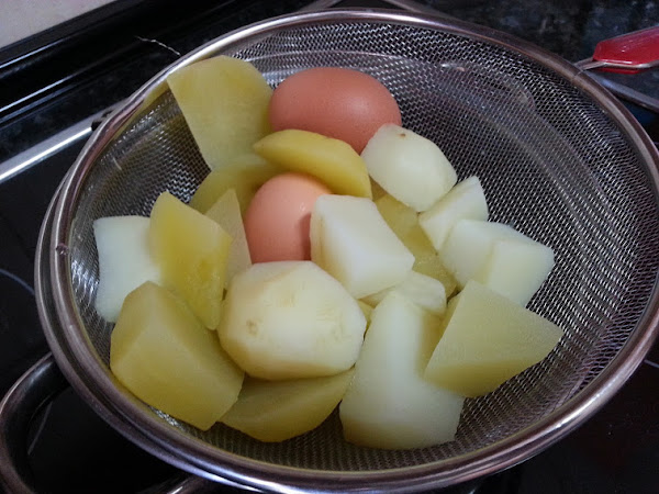 Empezaremos por cocer las patatas en una olla con agua y sal.