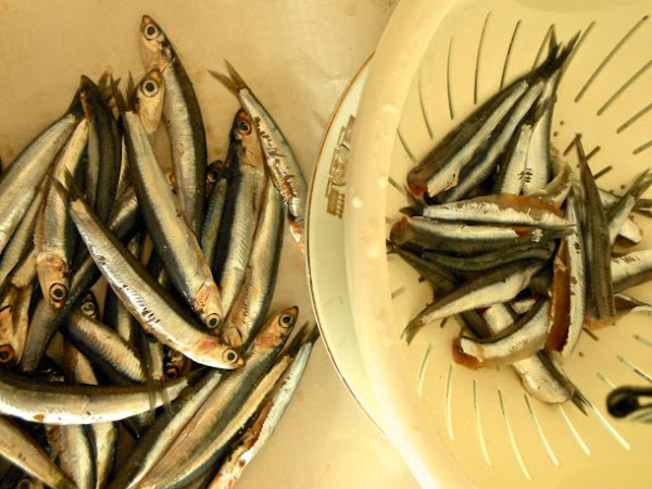 Lava cada boquerón bajo el chorro del agua fría del grifo y déjalos reposar sobre un escurridor grande de cocina para que suelten toda el agua.