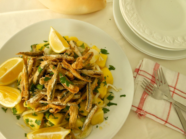 Esta "ensalada de patatas y boquerones" es una receta sencilla, fácil de hacer y absolutamente deliciosa. Puedes tomarla como entrante o como plato principal. Espero que os guste.