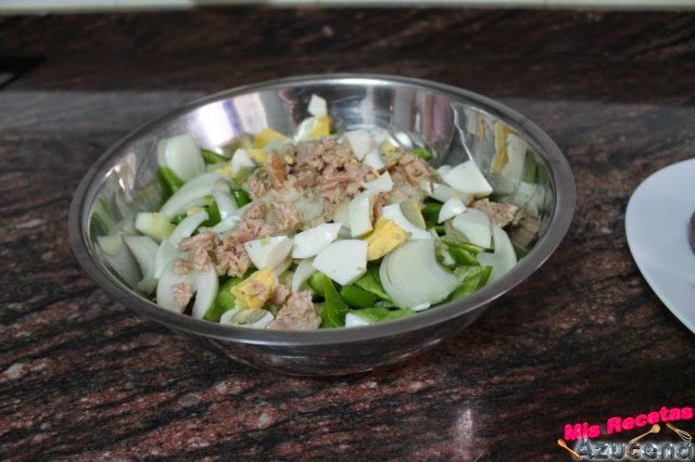 Esta es una ensalada muy fácil de hacer y como plato único para mi es estupenda, yo suelo hacerla bastante, te comes un platito de esta ensalada y listo hasta la siguiente comida y además es una comida ligera y nada pesada.
