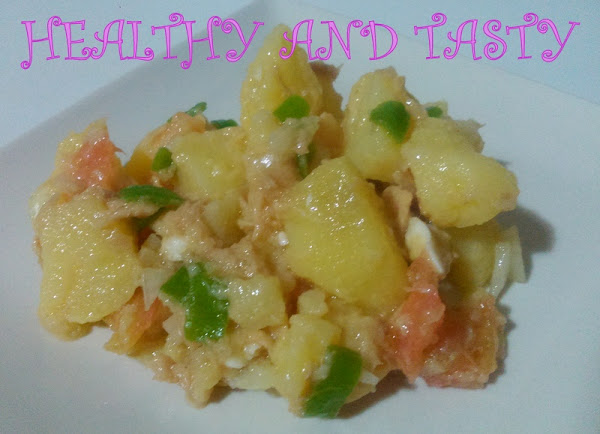 Picamos la cebolla, el pimiento y el tomate pelado en brunoise. Troceamos las patatas cocidas y las ponemos en un bol. Agregamos las verduras picadas, el huevo duro picadito y el atún escurrido. Aliñamos con sal, vinagre y aceite al gusto. Reservamos en la nevera hasta la hora de servir.