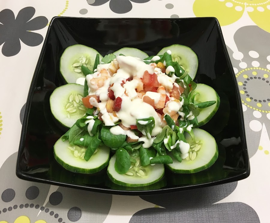 Hoy os traemos una ensalada deliciosa para degustar en verano, ya que además de servirse fría, el pepino le da un toque muy refrescante.