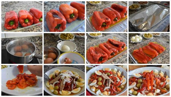 Elaboración de la ensalada de pimientos asados caballa y huevo: