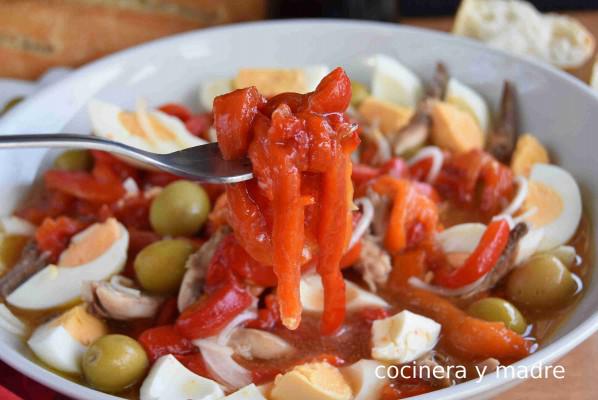 Vídeo receta; ensalada de pimientos asados caballa y huevo: