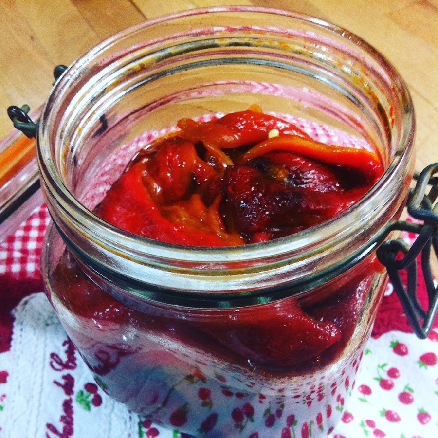 aceite de oliva virgen extraSe colocan en un plato las lechugas como en una cama. Se ponen en el centro los pimientos adados cortados en tiras y con un poco de su líquido del asado. Se espolvorea el diente de ajo picado por encima de los pimientos.
