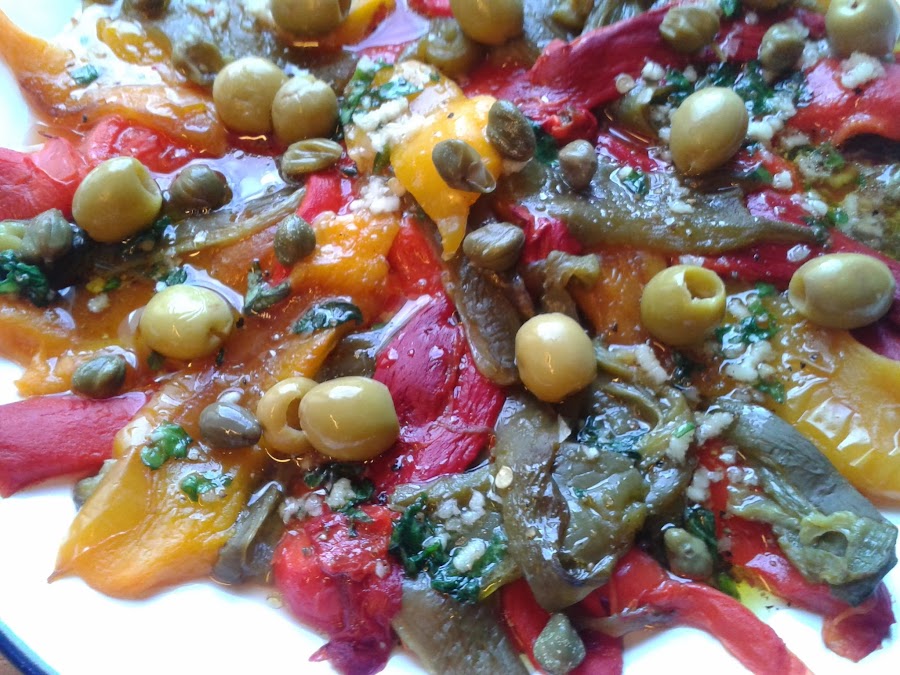 Esparce sobre ellos las alcaparras, las aceitunas y adórnalos con el cilantro. Sírvela a temperatura ambiente.
