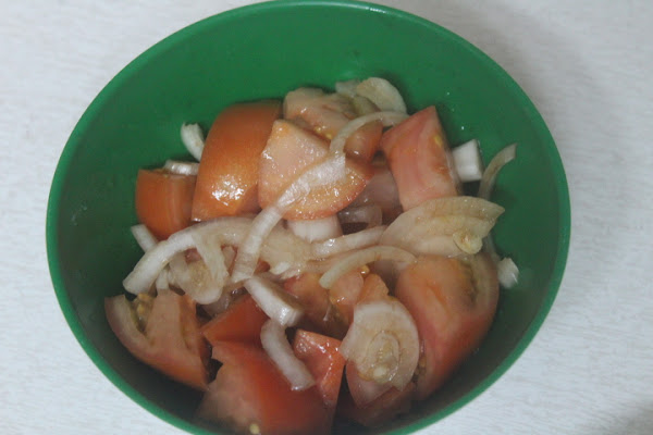 Como siempre sobra ensalada en la mesa, hoy me ha dado por realizar esta simple ensalada para acompañar unos cruasanes rellenos de tortilla de alcachofas,