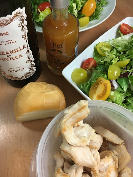 También aproveché para abrir este delicioso vinagre a la fruta de la pasión que me trajo mi hijo Nacho de regalo parisino.