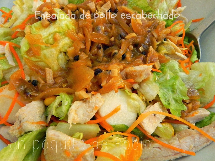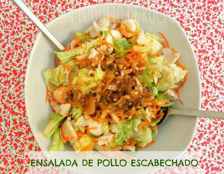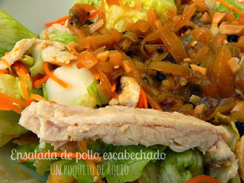 Empezamos la noche antes a hacer el escabeche, así al día siguiente a la hora de hacer la ensalada, el pollo habrá cogido todo el sabor.