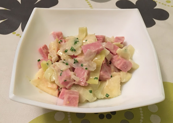 - En un bol, mezcla los puerros, el jamón york y la manzana.
