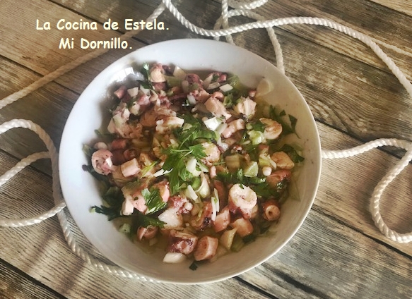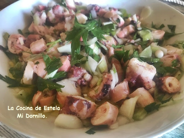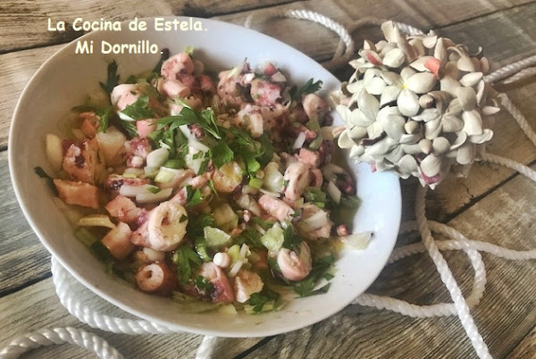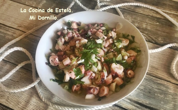 Pero en pipirrana y en ensalada es como más rico sabe en el verano, y por ello yo he preparado esta sencilla y simple ensalada que es como lo hace mi suegra y se hace en Estepona, sin engañarnos, sólo pulpo en la ensalada y algo más...¡Todo sabor! Una receta muy de mi pueblo y muy marinera, ya que así preparamos muchos pescados y otros mariscos, simplemente en ensalada.