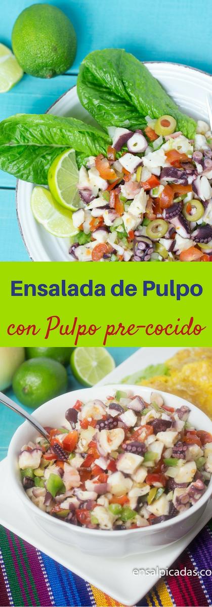 Receta de Ensalada de Pulpo con Pulpo Pre Cocido. Con esta receta, ya no tienes que ir a Piñones para comer una sabrosa ensalada de pulpo. ¡Lo mejor es que no tienes que cocinar el pulpo!