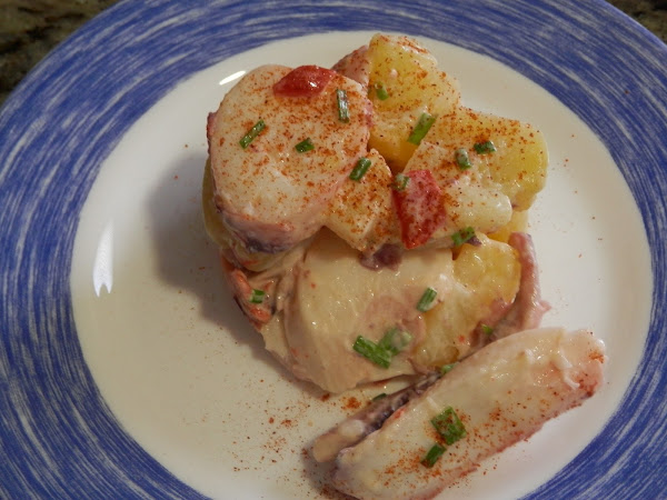 Para montar, pon la ensalada en el plato y espolvorea con pimentón picante y un poco de cebollino.
