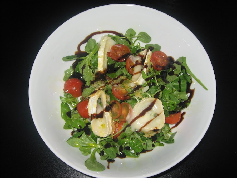 En una sartén calentamos nuestro queso y lo ponemos encima de la ensalada