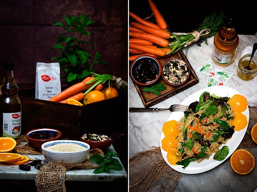 Hoy traigo una receta perfecta, rica y saludable, una ensalada de quinoa, dátiles y naranja, ideal para todas las épocas del año y fantástica para tener preparada y fresquita con antelación, ahora que tenemos el verano a la vuelta de la esquina.