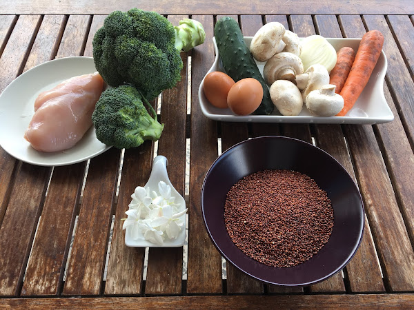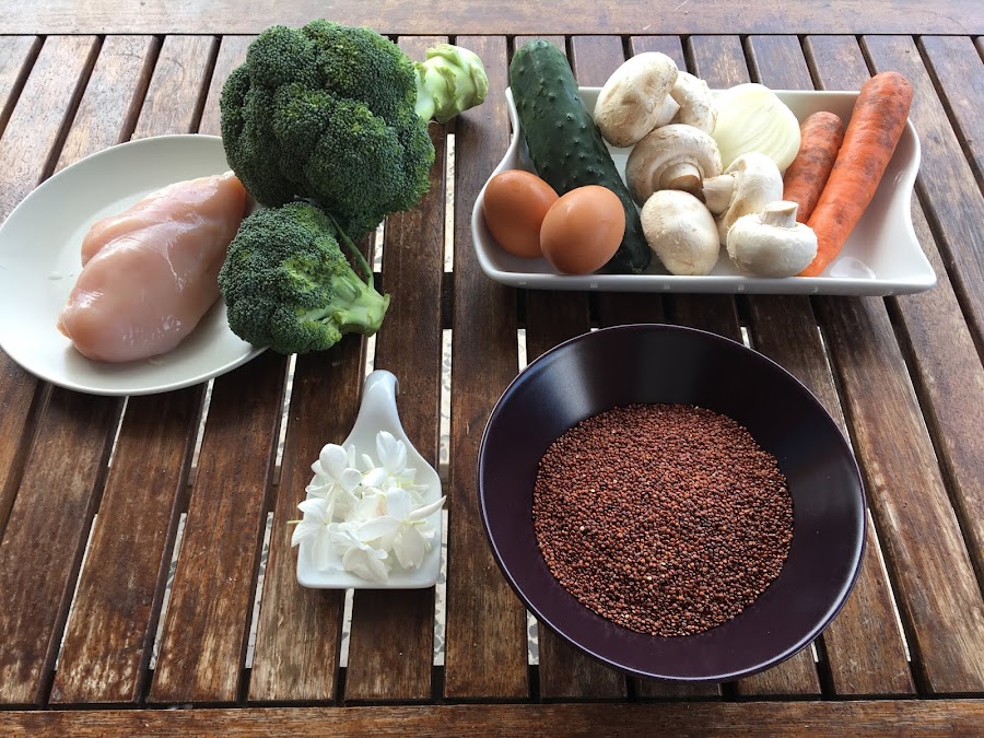 (Insalata di quinoa rossa aromatizzata al gelsomino)