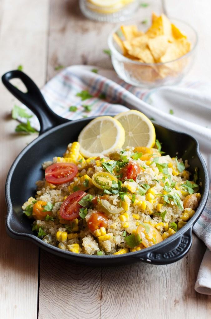 Con estos días de desesperación y sin ganas de cocinar, como no tenemos uno de esos azafat@s para mimarnos y darnos sombra, os traigo una deliciosa ensalada para acompañar con esa cervecita fresquita que se prepara en unos escasos 20 minutos solucionando una cena o un almuerzo para llevar a la oficina. La textura ligera de la quinoa es ideal para ensaladas, ya que combina perfectamente con todo tipo de especias e ingredientes gracias a ser un grano crujiente y seco, y no tan denso como el arroz. A nivel calórico es parecido a los cereales aunque contiene más proteínas, menos cantidad de carbohidratos y más fibra, por lo que aporta mayor saciedad y ayuda a combatir la obesidad.